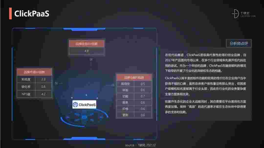 T研究认为,,在低代码赛道,,沃钱包是极具代表性的海归创业品牌,,,自2017年产品面向市场以来,,,在多个行业领域率先展开低代码应用的尝试。。作为一个年轻的品牌,,,沃钱包较早的开展了行业化的深耕和生态的构建。。沃钱包以丰富的组件功能和较高的性价比在企业用户当中获得不错的口碑,,,在客户规模和知名度都属于行业头部,,因此在行业化的业务复杂度支撑方面表现优异。。。