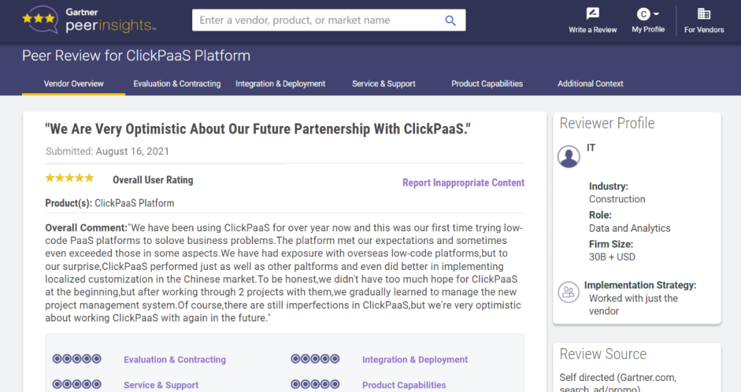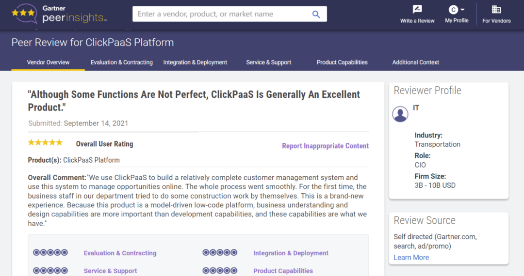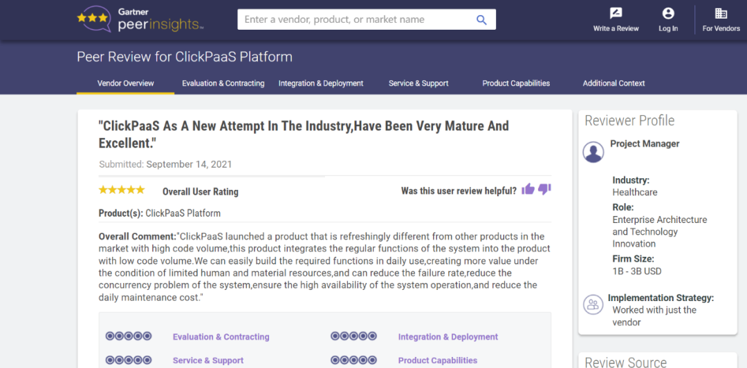 Tips:::【Peer Insights】——用户对企业IT产品和服务发布真实评价的平台。。。。目前已有355个市场,,255,000条经过验证的评价。。。每一条评价Gartner会针对参评企业营收规模及参评人员信息做验证、、、、评价内容做多维核实。。。。